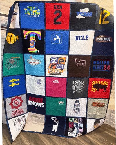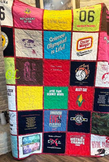 All custom made quilts are handcrafted with care. I can use your old clothes, t-shirts, photographs, your fabric or mine.